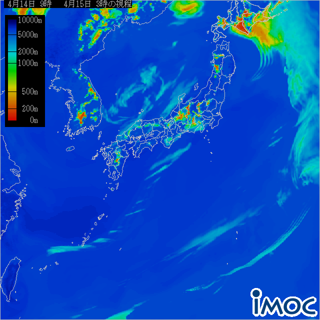 南日本 視程ガイダンス(気象庁提供) 2025年4月15日(火)3時(JST)