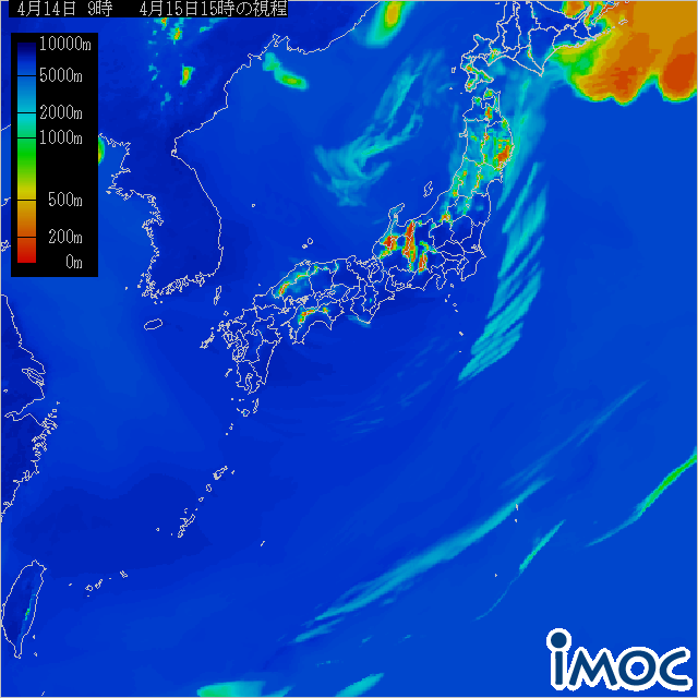 南日本 視程ガイダンス(気象庁提供) 2025年4月15日(火)15時(JST)