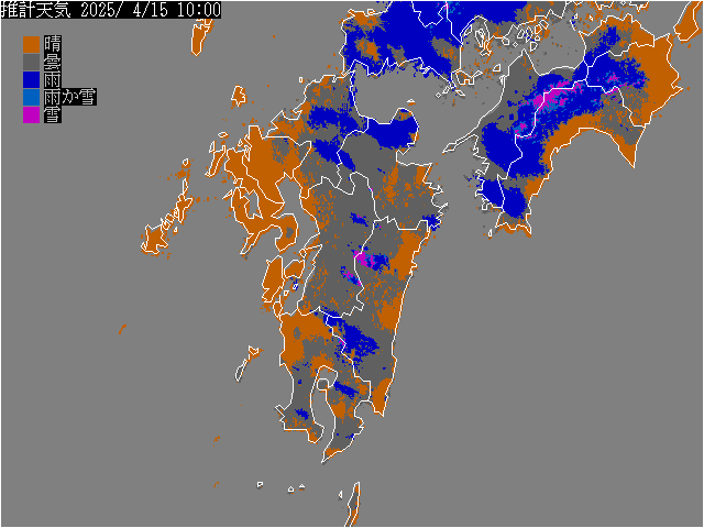 九州 推計天気(気象庁提供) 2025年4月15日10:00(JST)