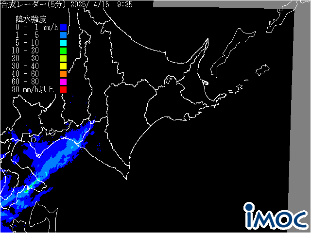 東北海道 合成レーダー(気象庁提供) 2025年4月15日9:35(JST)