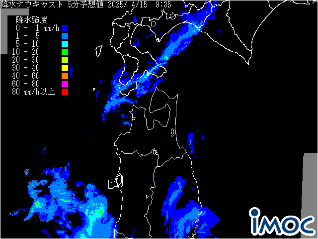津軽海峡 5分後降水ナウキャスト(気象庁提供) 2025年4月15日9:35(JST)