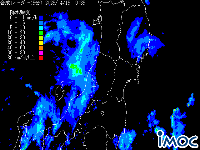 東北 合成レーダー(気象庁提供) 2025年4月15日9:35(JST)