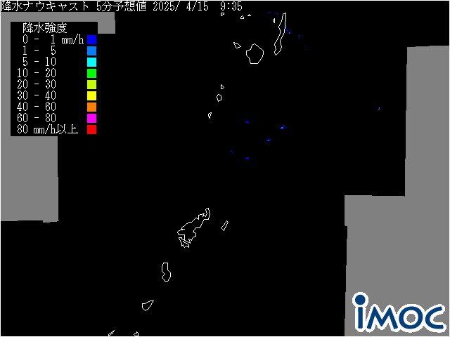 奄美 5分後降水ナウキャスト(気象庁提供) 2025年4月15日9:35(JST)