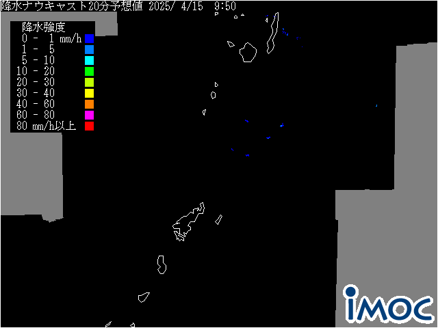 奄美 20分後降水ナウキャスト(気象庁提供) 2025年4月15日9:50(JST)