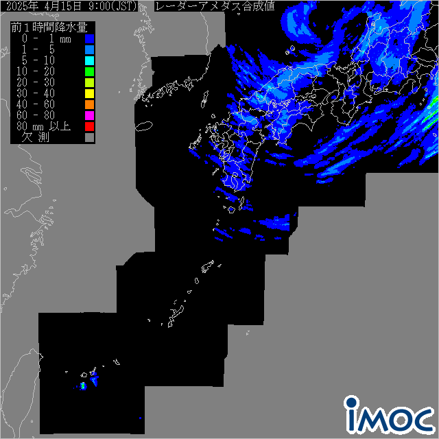 南日本 レーダーアメダス合成値(気象庁提供) 2025年4月15日9時(JST)