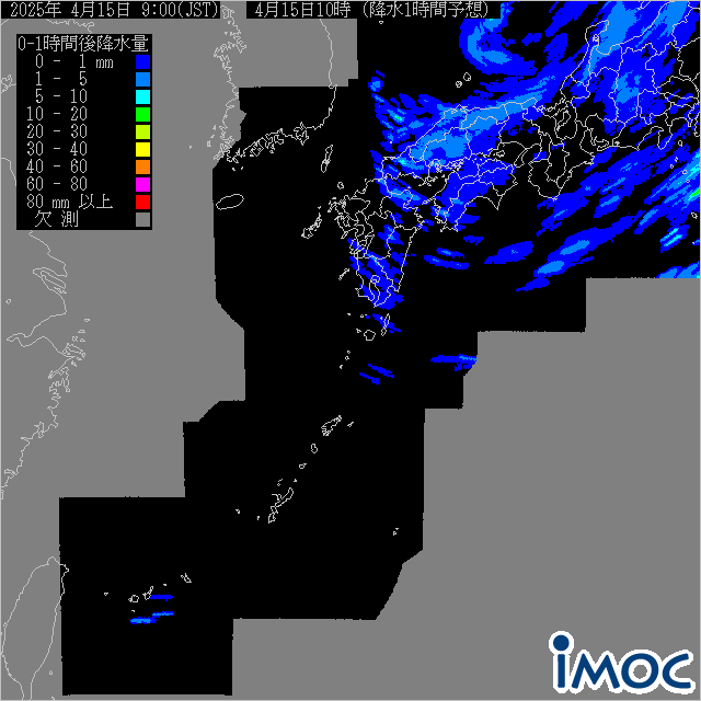 南日本 1時間後降水短時間予想(気象庁提供) 2025年4月15日10時(JST)