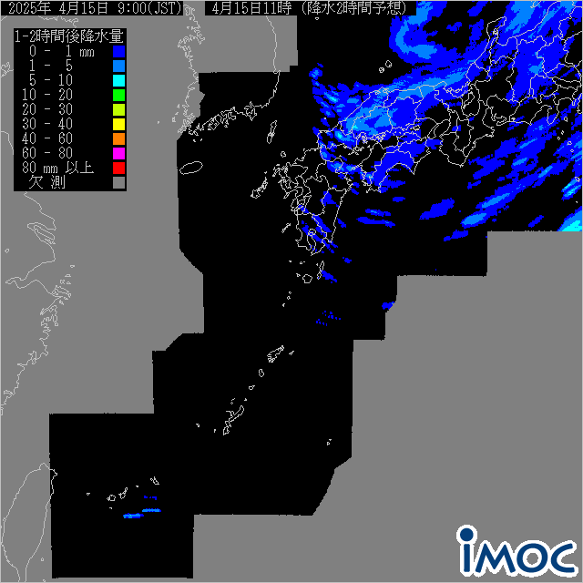 南日本 2時間後降水短時間予想(気象庁提供) 2025年4月15日11時(JST)