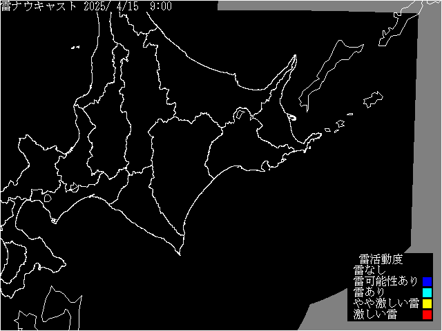 東北海道 雷ナウキャスト(気象庁提供) 2025年4月15日9:00(JST)