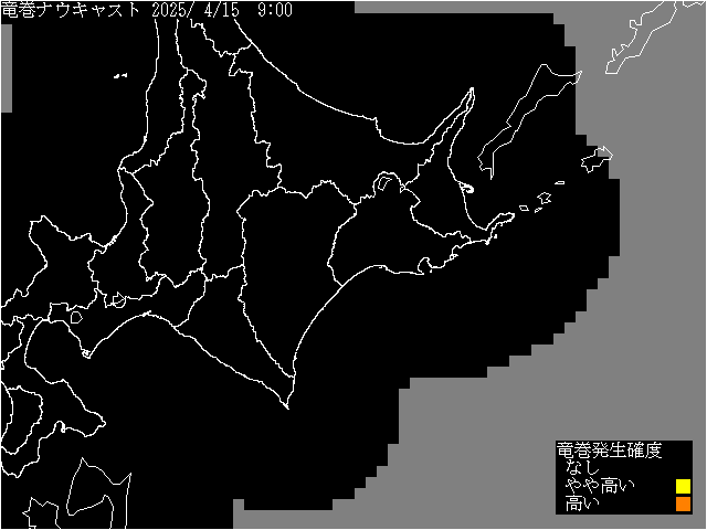 東北海道 竜巻ナウキャスト(気象庁提供) 2025年4月15日9:00(JST)