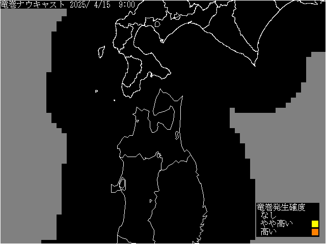 津軽海峡 竜巻ナウキャスト(気象庁提供) 2025年4月15日9:00(JST)